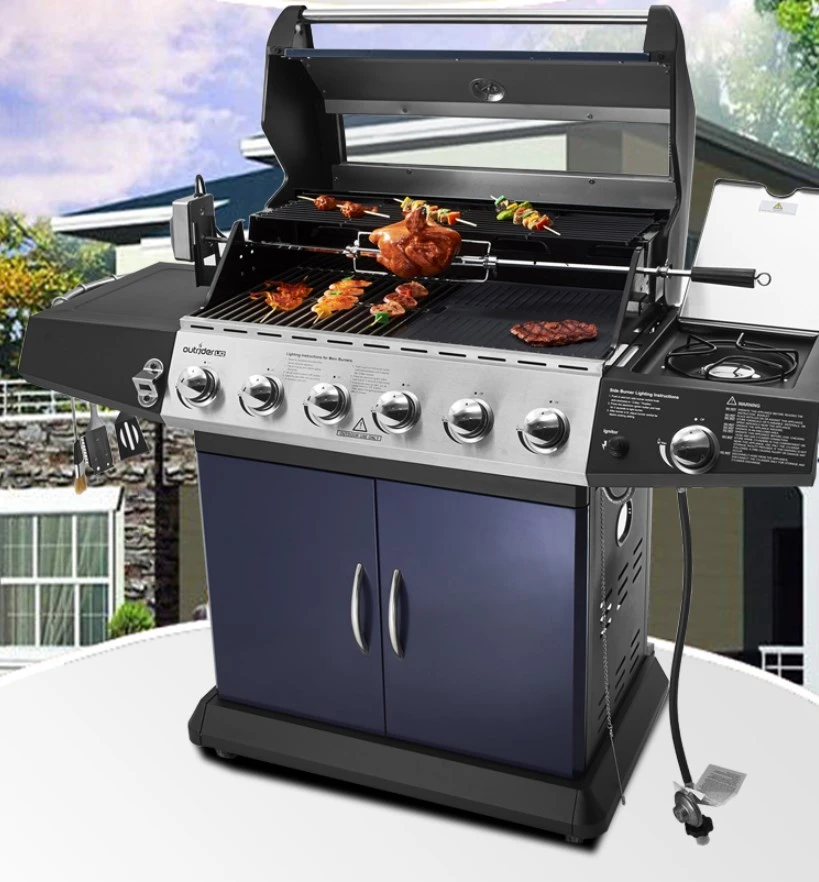 Csa Ce High Quality Outdoor Gas Bbq Grill Six Burners Sider Burner Ga Bbq Grill With Skewer Motor Cover Bbq Grills Aliexpress